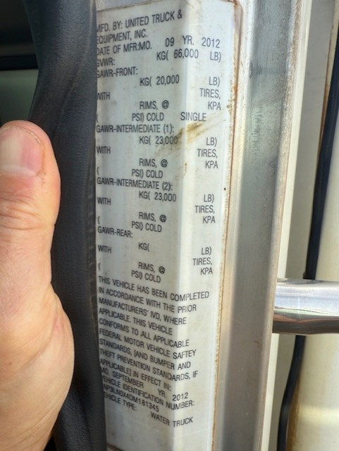 USED 2013 5000 Gallon Water Truck, 2013 Peterbilt 348, Allison 3500-RDS, 66K GVWR